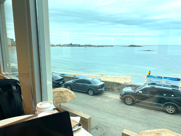 주문한 음료를 놓고 이제 바다를 구경합니다.