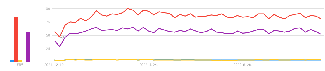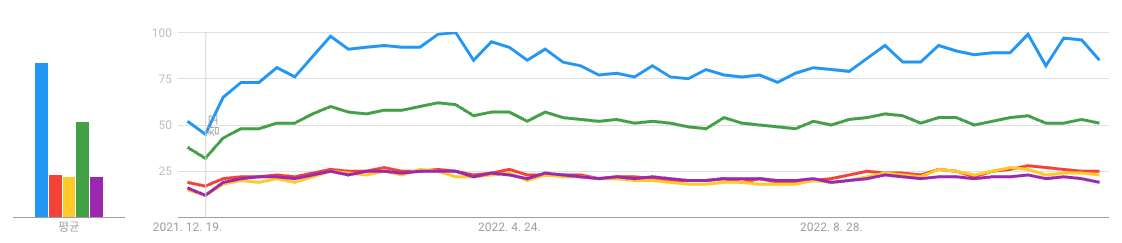 TIOBE index에서 상위 랭크된 프로그래밍 언어를 구글 트렌드로 알아보겠습니다.