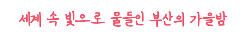 부산에서만 볼 수 있는 초대형 불꽃과 광안대교 경관조명을 활용한 미디어파사드 연출, 화려한 불꽃과 조명, 음악이 어우러져 스토리텔링이 가미된 부산멀티불꽃쇼와 해외 초청 불꽃쇼를 만나볼 수 있구요. 광안리 해수욕장뿐만 아니라 동백섬, 이기대 앞까지 “3 point" 연출로 다양한 장소에서 불꽃쇼를 관람할 수 있습니다.