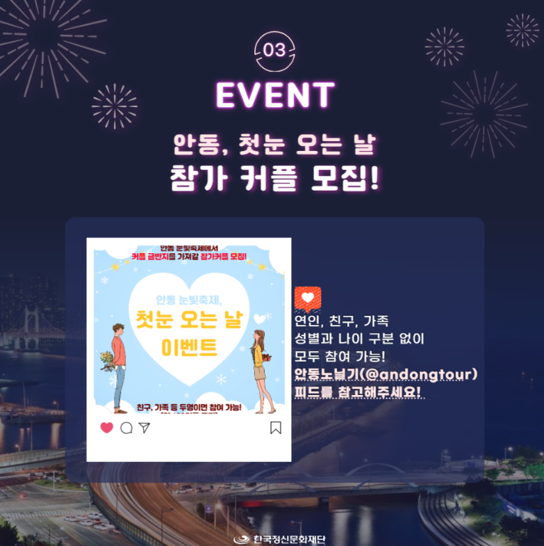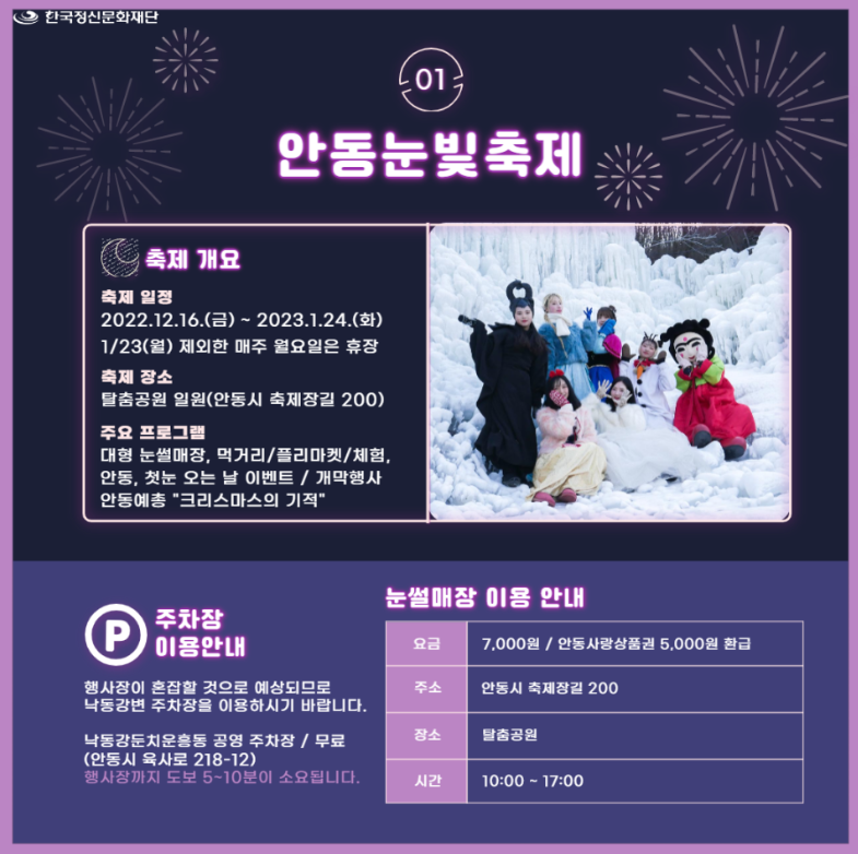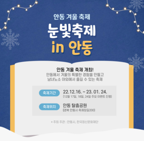 안동눈빛축제, 겨울놀이, 겨울먹거리, 눈썰매장, 커플이벤트, 겨울플리마켓, EDM공연..즐거움이 가득한 시간 되세요.