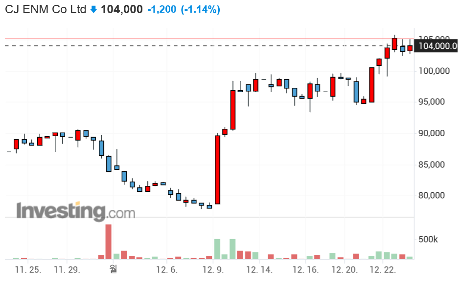 관련 종목이 유추가 됩니다. 그래서 지금도 CJENM을 갖고 있습니다.