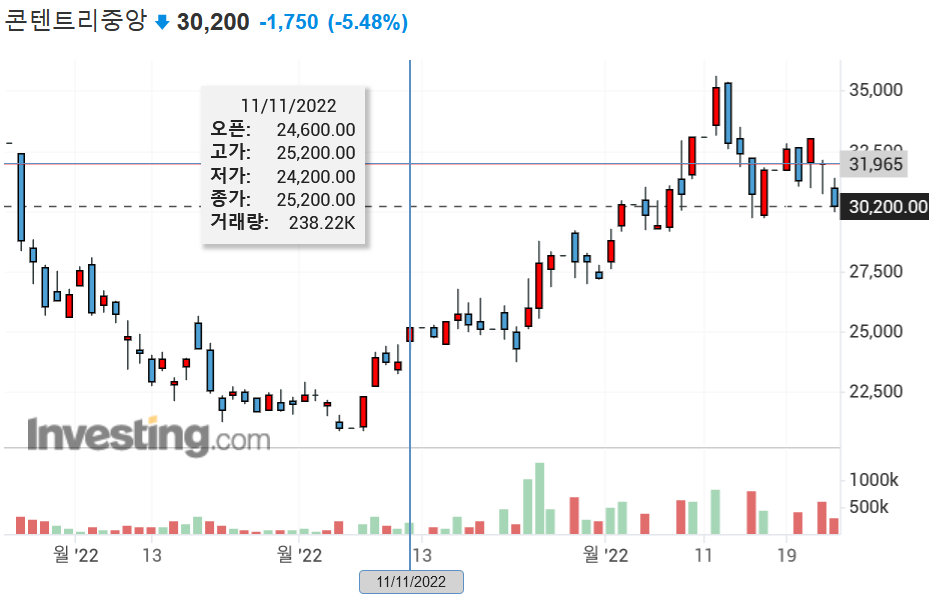 래몽래인보다는 실적이 실려있는 콘텐트리중앙에 관심이 더가는건 제 성향입니다.