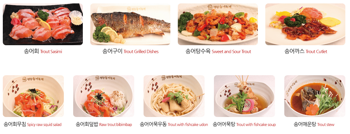 송어양식을 최초로 시작한 평창에서 송어는 다른지역 송어에 비해 살이 찰지고, 맛이 뛰어나고 힘이 세 손맛도 그만입니다.