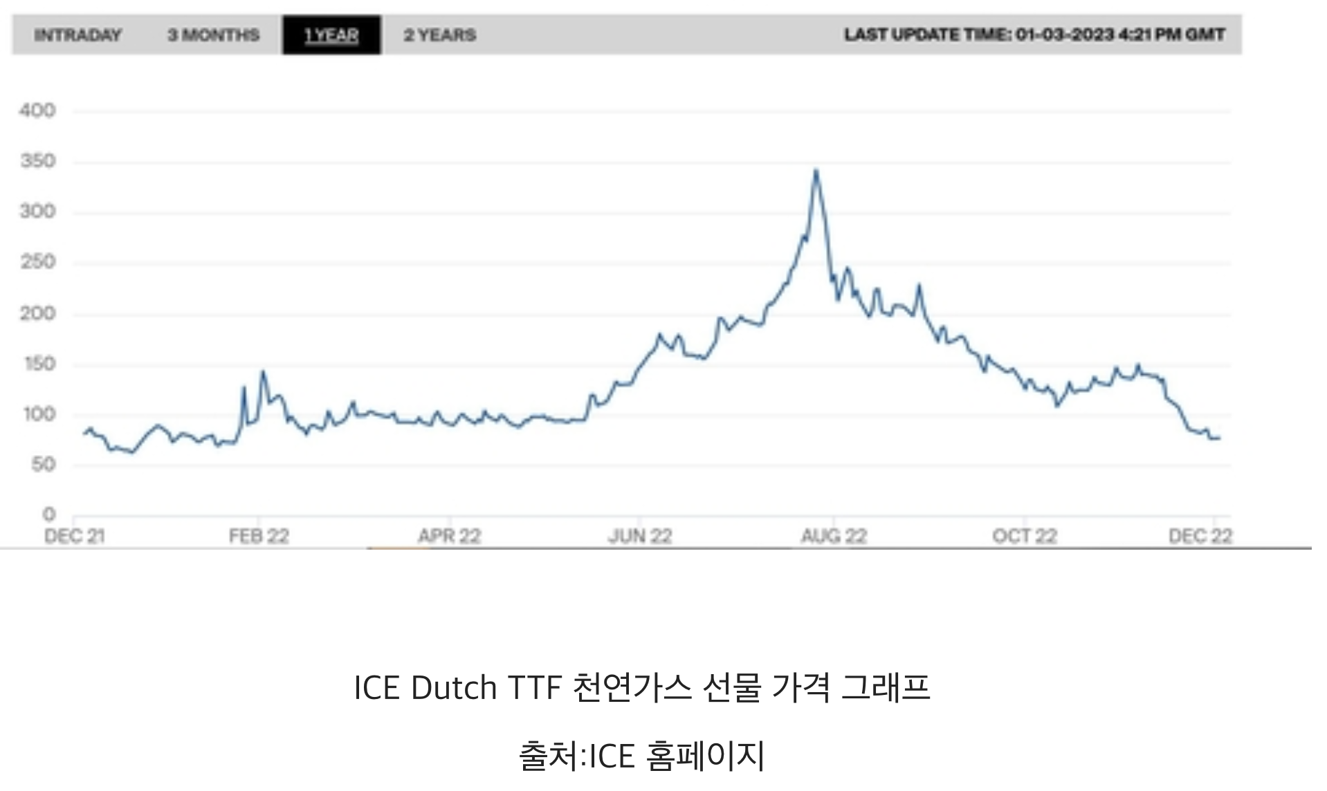 유럽 각국의 천연가스 가격에 대한 대응과 상대적으로 온화한 겨울 등에 따른 것으로 풀이되고 있습니다.