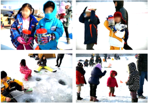 겨울철 얼음판 위에서 빙어낚시 등, 가족들과 즐거운 시간 되세요