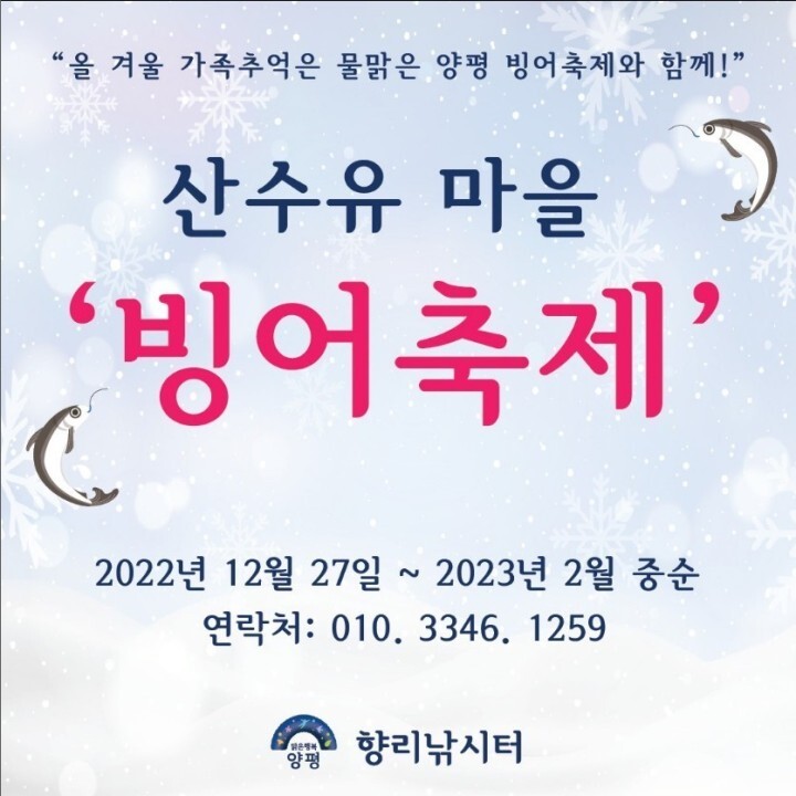 또, 따뜻한 먹거리들이 준비되어 있는 양평 산수유마을 빙어축제로 떠나자!