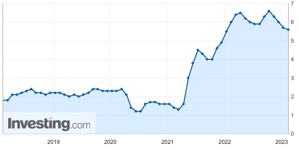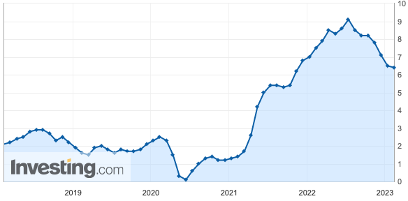 미국 노동부는 14일(현지시간) 지난달 미국 소비자물가가 지난해 1월과 비교해 6.4% 상승했다고 밝혔습니다. 전달(6.5%)에 비교해서는 0.1%포인트 낮아졌습니다. 시장 예상치인 6.2%보다는 0.2%포인트 높은 수치다. CPI는 지난해 6월 9.0%를 정점으로 하락세를 타고 있지만, 예상만큼 빠르게 가라앉지는 않고 있습니다.