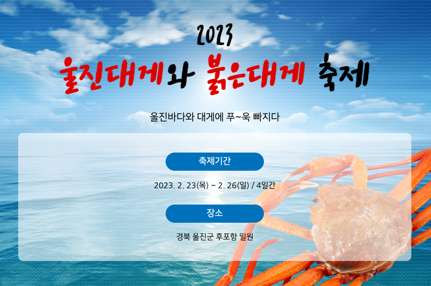 그러면, 울진대게와 붉은대게축제의 자세한 행사와 프로그램, 체험행사에 대해서 알아볼까요.