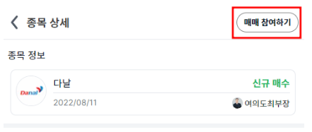구독한 종목한 인증가능하므로 다음 순서대로 '매매 참여하기' 클릭