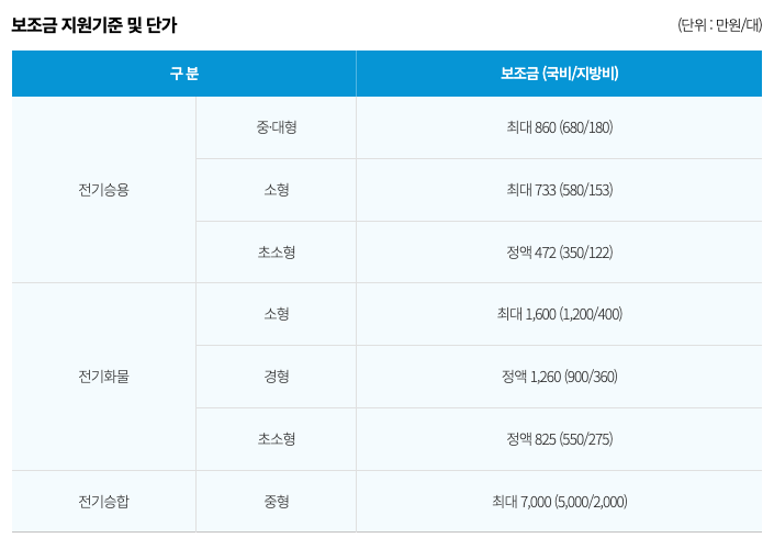전기차 종별 보조금 정보는 아래 편에 정리하였습니다.