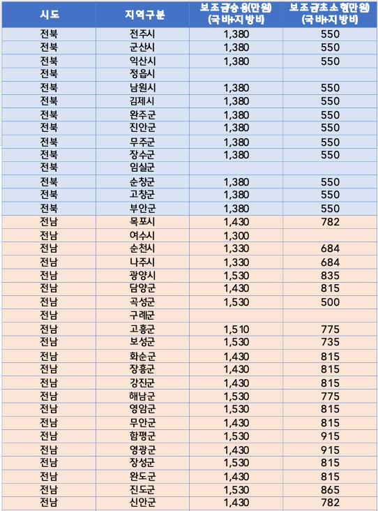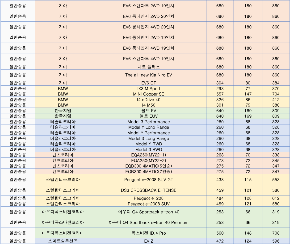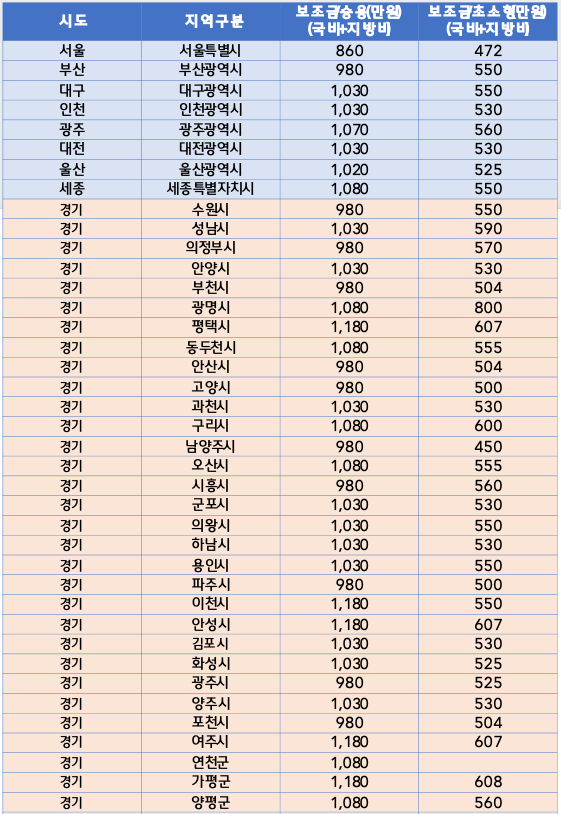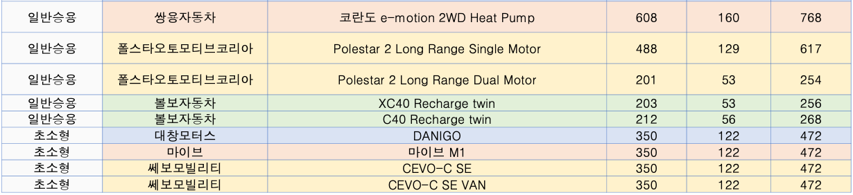🔹 2023년 상반기 전기차 지자체 차종별 보조금 (국비+지방비 최대금액)
