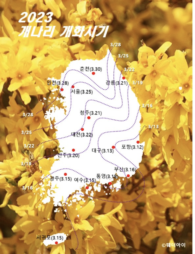 🪴 2023 전국 개나리 개화시기