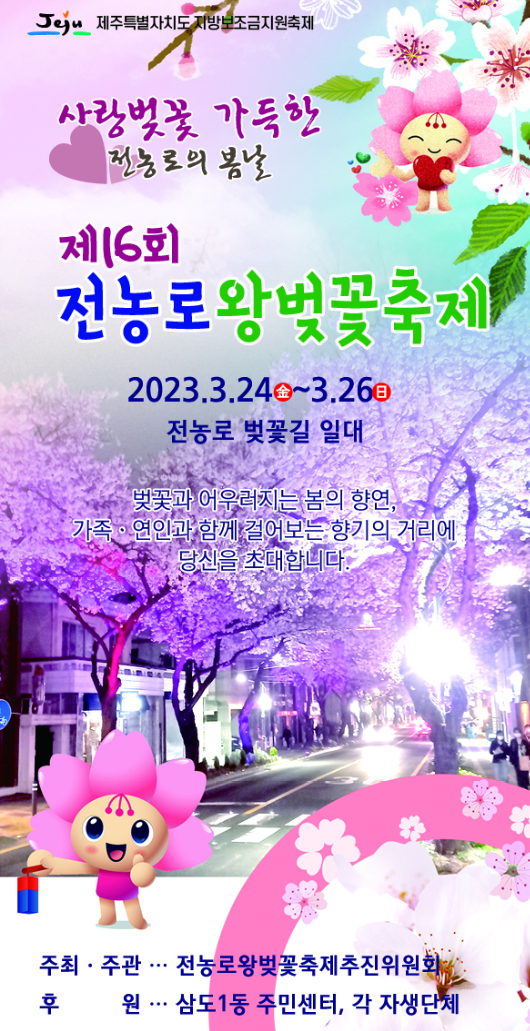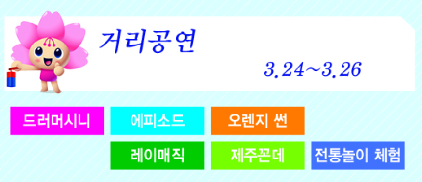 그러면, 제주시 전농로 왕벚꽃축제의 자세한 행사와 라인업, 프로그램, 체험행사에 대해서 알아볼까요.