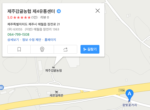 🗺 내비 (제주시) '제주감귤농협' 또는 '제주감귤농협 제4유통센터' 또는 '제주시 애월읍 장전로 21' 주차장으로 설정하세요.