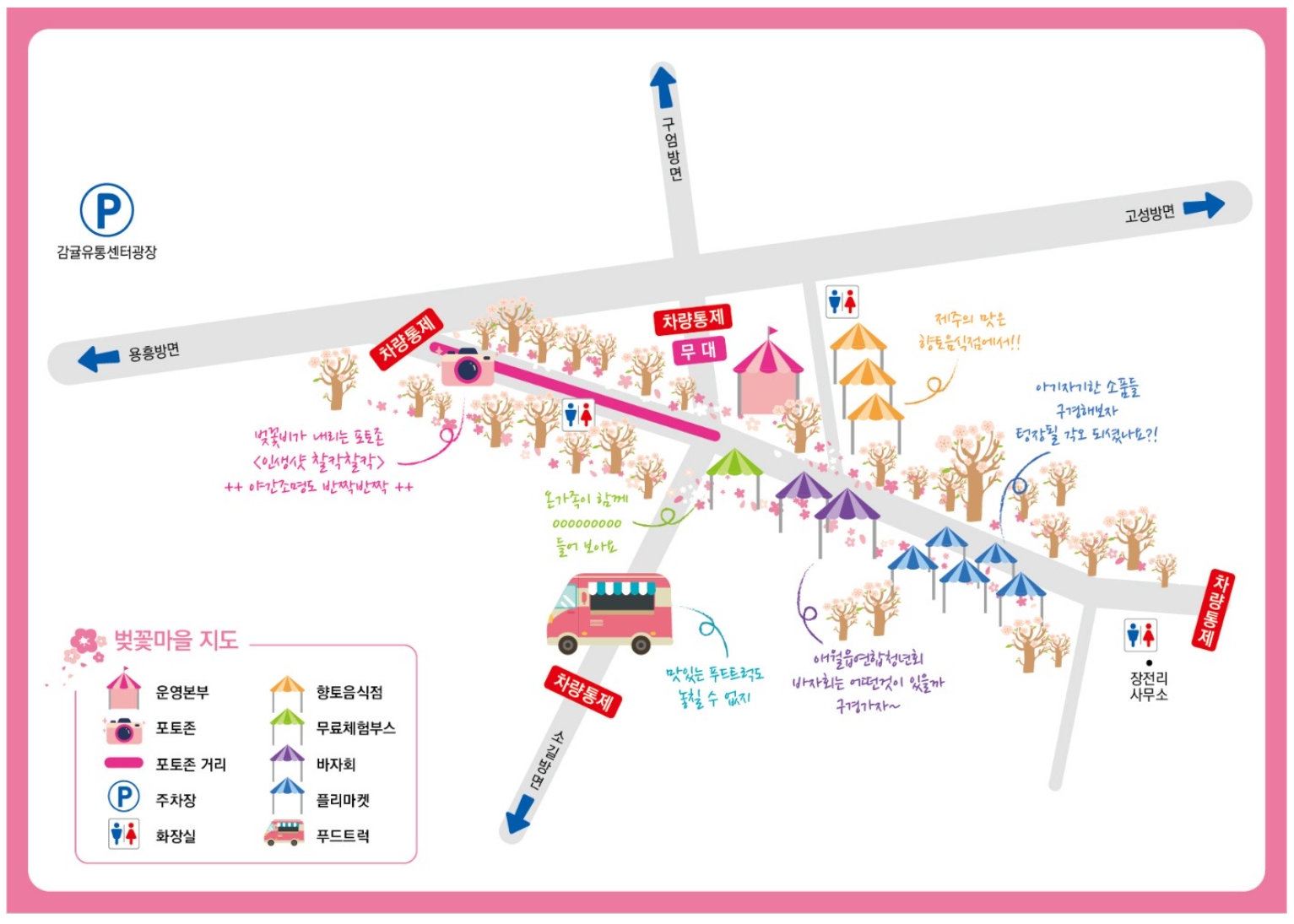 교통통제 : 22일부터 27일까지 장전리 왕벚꽃거리 일대