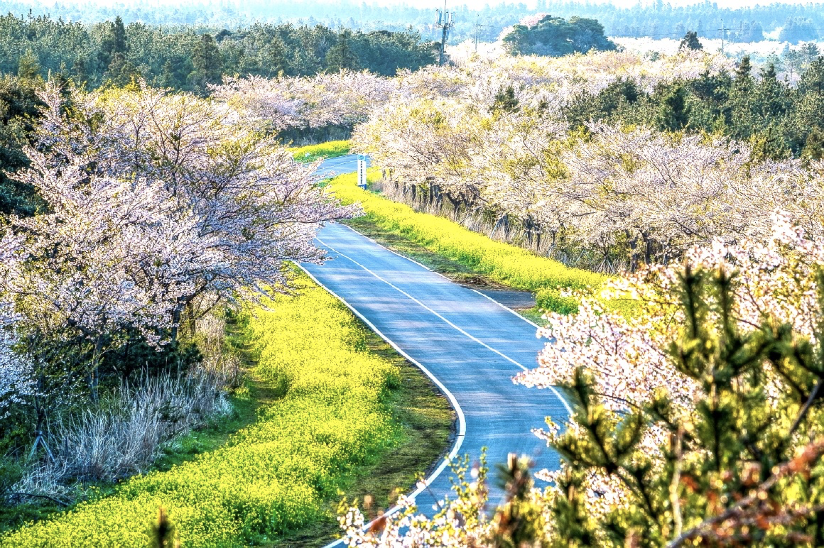 녹산로는 왕벚나무로 펼쳐지는 벚꽃 터널이 장관입니다. 녹산로는 유채꽃 명소이기도 하지만, 제주 벚꽃 명소!