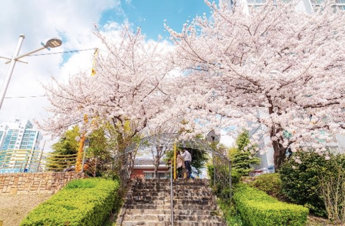 주택과 아파트 단지 사이로 매년 봄 연분홍빛 벚꽃이 장관을 이루고 있습니다. 아직 잘 알려지지 않아 번잡한 유명 벚꽃길보다 조용히 봄을 즐길 수 있습니다. 만개한 벚꽃과 가로등 불빛의 조화가 매력인데 퇴근길에 잠시 들러 봄을 만끽하기 좋습니다.
