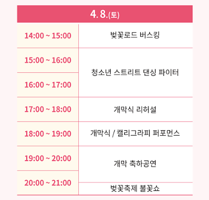 2023. 4. 8.(토) : 식전공연, 개막식, 축하공원, 불꽃쇼 등