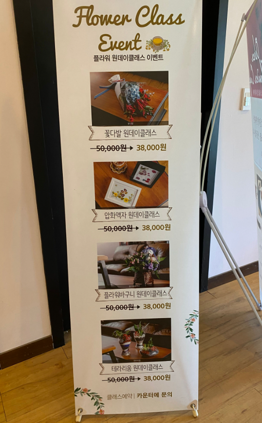 또, 옆 동 원예체험장에서는 '플라워 원데이트클래스 이벤트' 안내 배너가 있습니다.