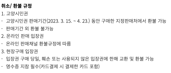 ※ 단, 고양시민 예매권, 얼리버드 입장권 등 할인권은 제외