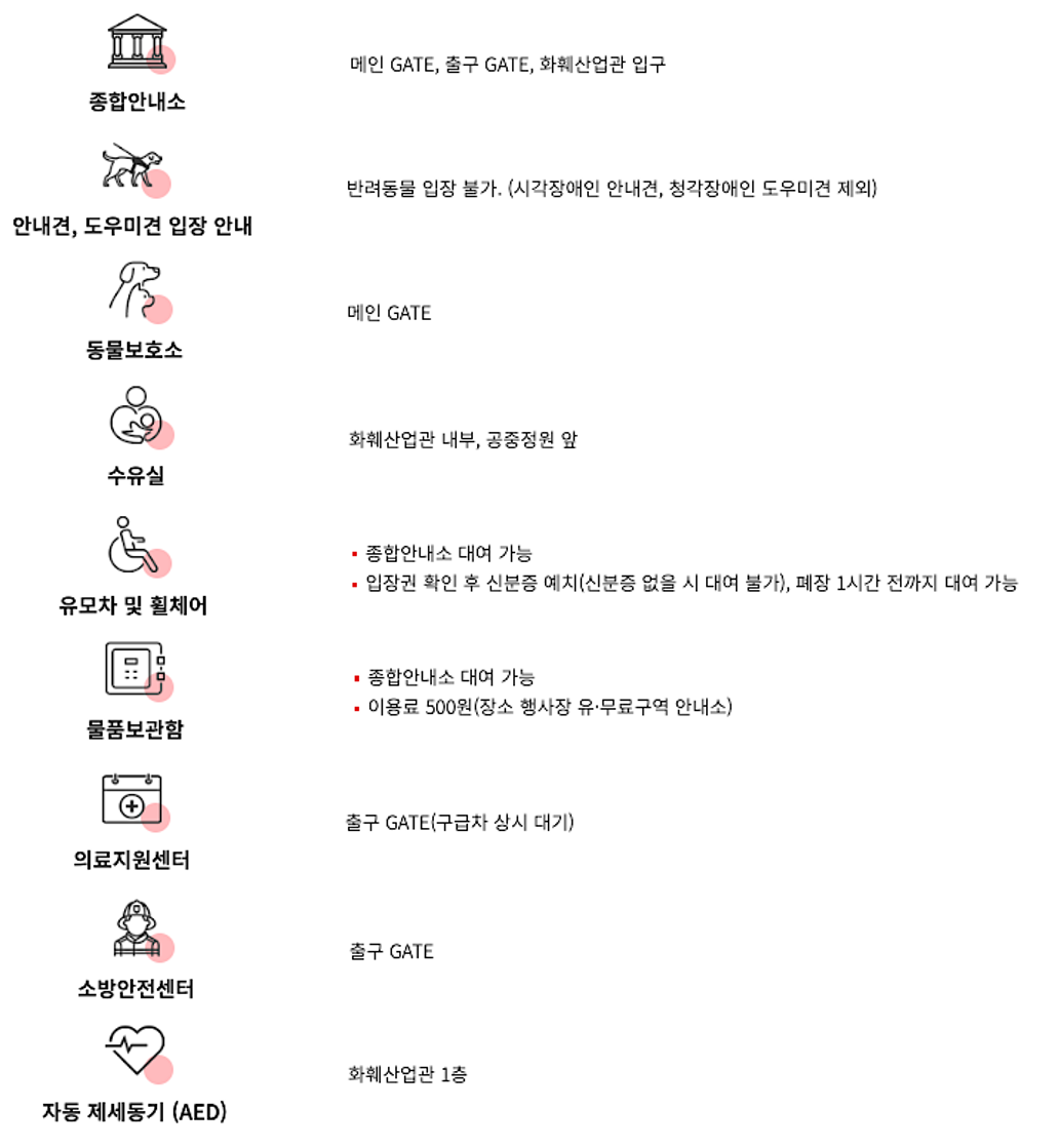 - 퀵보드, 자전거, 전동기구 등 탈것은 소지 입장이 불가하오니 인근 안내소에 맡기신 후 입장 바랍니다.