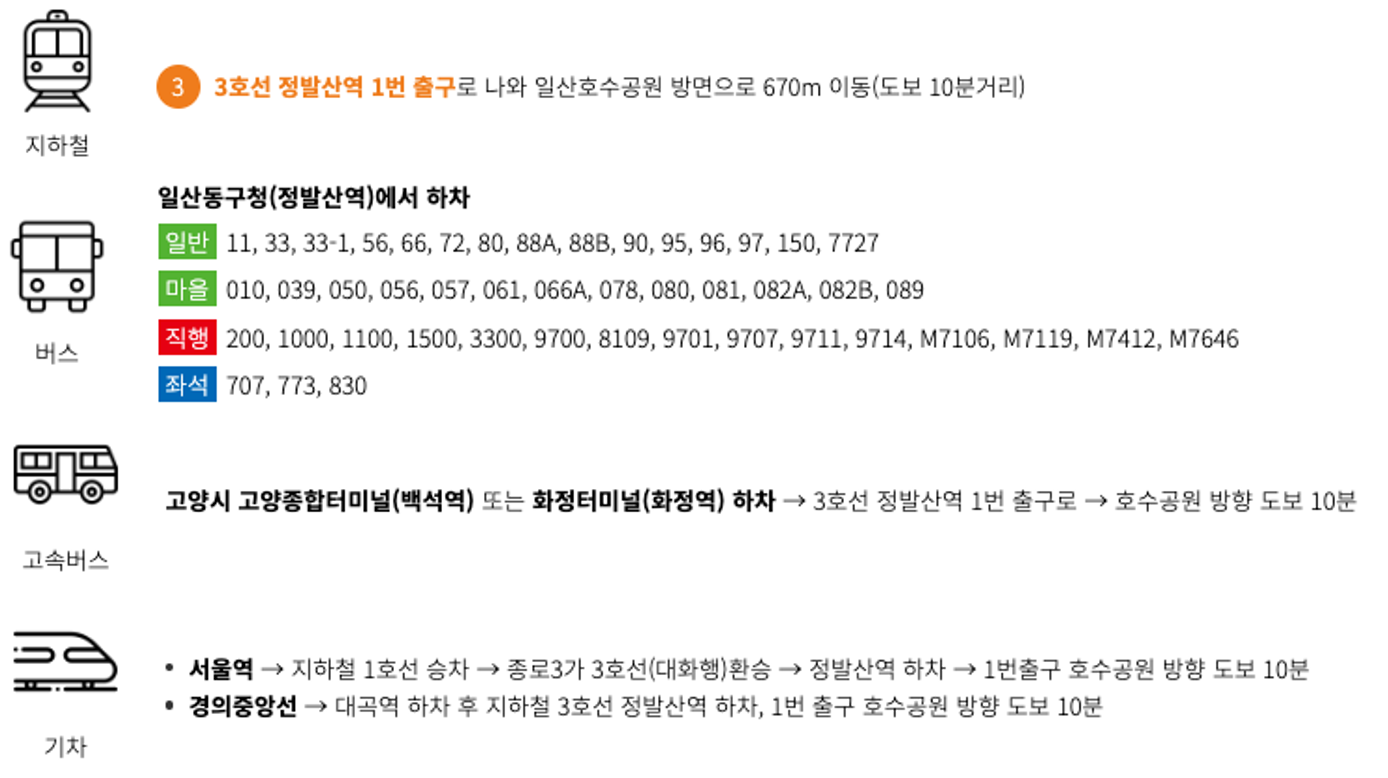 정발산역에서 하차하여 한울광장 쪽으로 이동하시면 메인 GATE에 도착하실 수 있습니다.