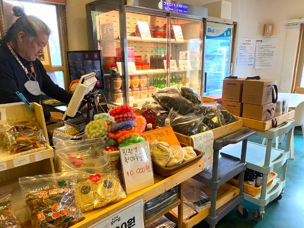카운터 앞에는 특산물들이 즐비합니다.