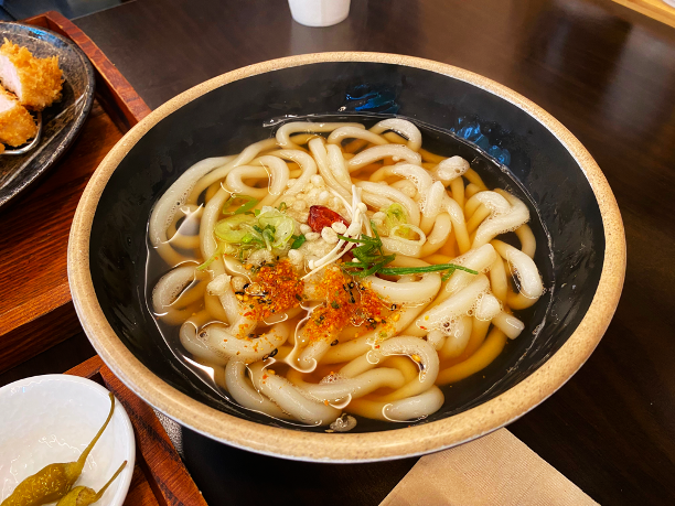 기본에 충실한 사이드메뉴의 카케우동을 주문했습니다. 양이 절반 정도라 돈까스와 함께 먹기에 적당한 양입니다.