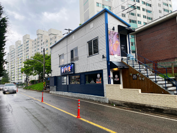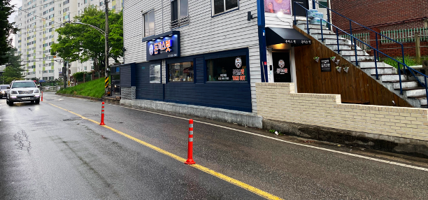 식당은 2차선 도로가에 바로 붙어 있습니다.