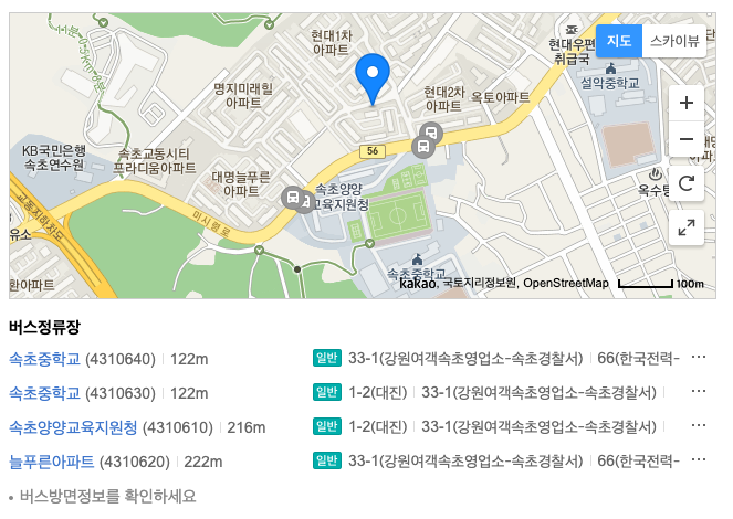 아파트 단지가 앞에 있어서 멀리 볼 것은 없고 바로 앞 도로의 공간이 보이는 뷰입니다.