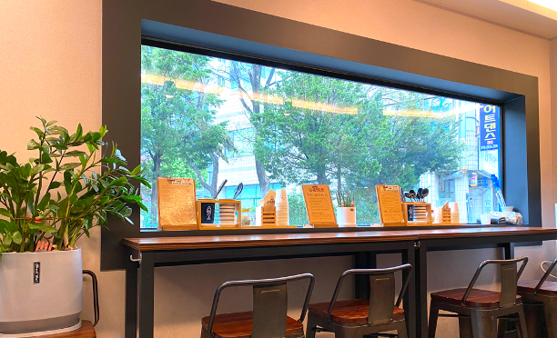 카운터 부근에서 볼 때 식당의 홀 뷰입니다.
