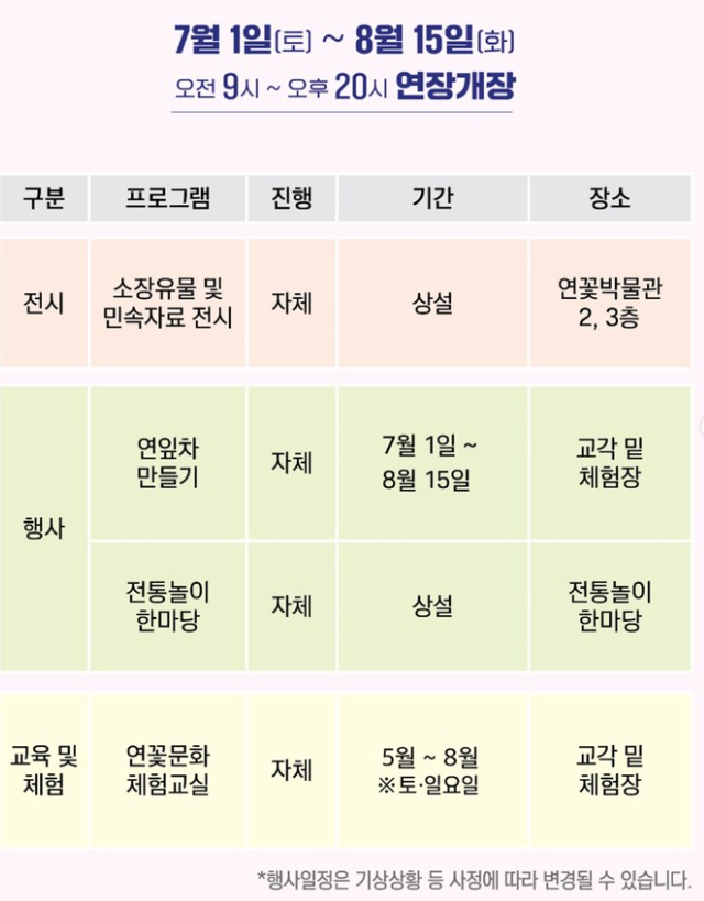 2. 연꽃문화 체험교실: 손수건만들기, 부채 만들기 등 체험형 교육으로 사전예약 후 진행 (입장료와 별도)