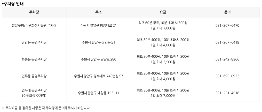◇ 입장료 : 5,000원 (화성행궁 입장료 포함)