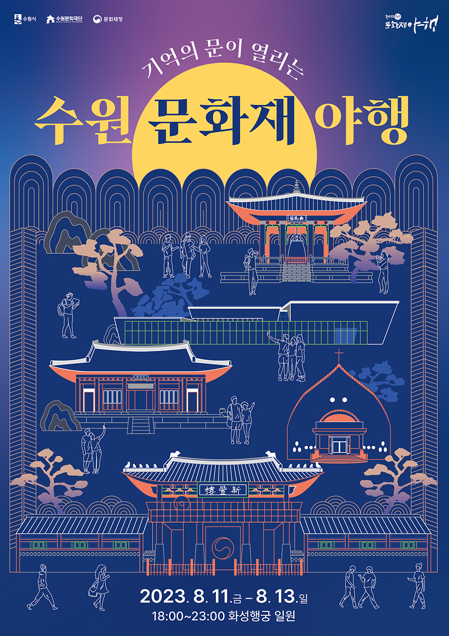 기억의 문이 열리는, 수원 문화재 야행(夜行)은 수원화성 내 문화재와 그 주변에 살았던 우리 이웃의 「기억」을 담아 8(夜) 프로그램을 구성하였다.