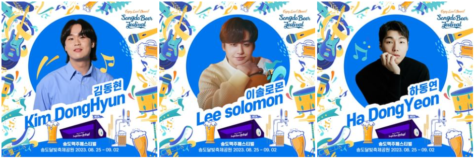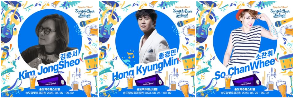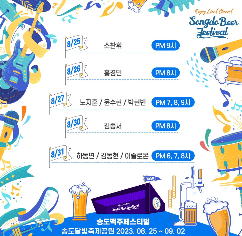 올해 송도맥주축제는 ‘Enjoy Live! Cheers(인조이 라이브 치어즈)!’를 주제로 열린다. 생생한 맛의 맥주와 라이브 공연 등 모든 순간을 즐기며 건배를 나누자는 뜻을 담았다. 축제기간 국내 최정상급 뮤지션 50여팀이 라이브 콘서트를 연다.