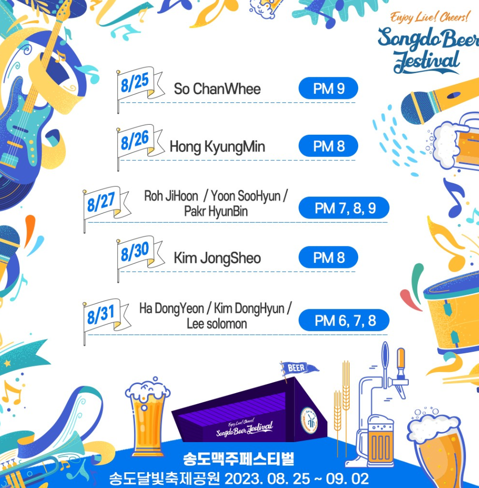 그러면, 송도 맥주축제의 자세한 행사와 프로그램, 라인업에 대해서 알아볼까요.