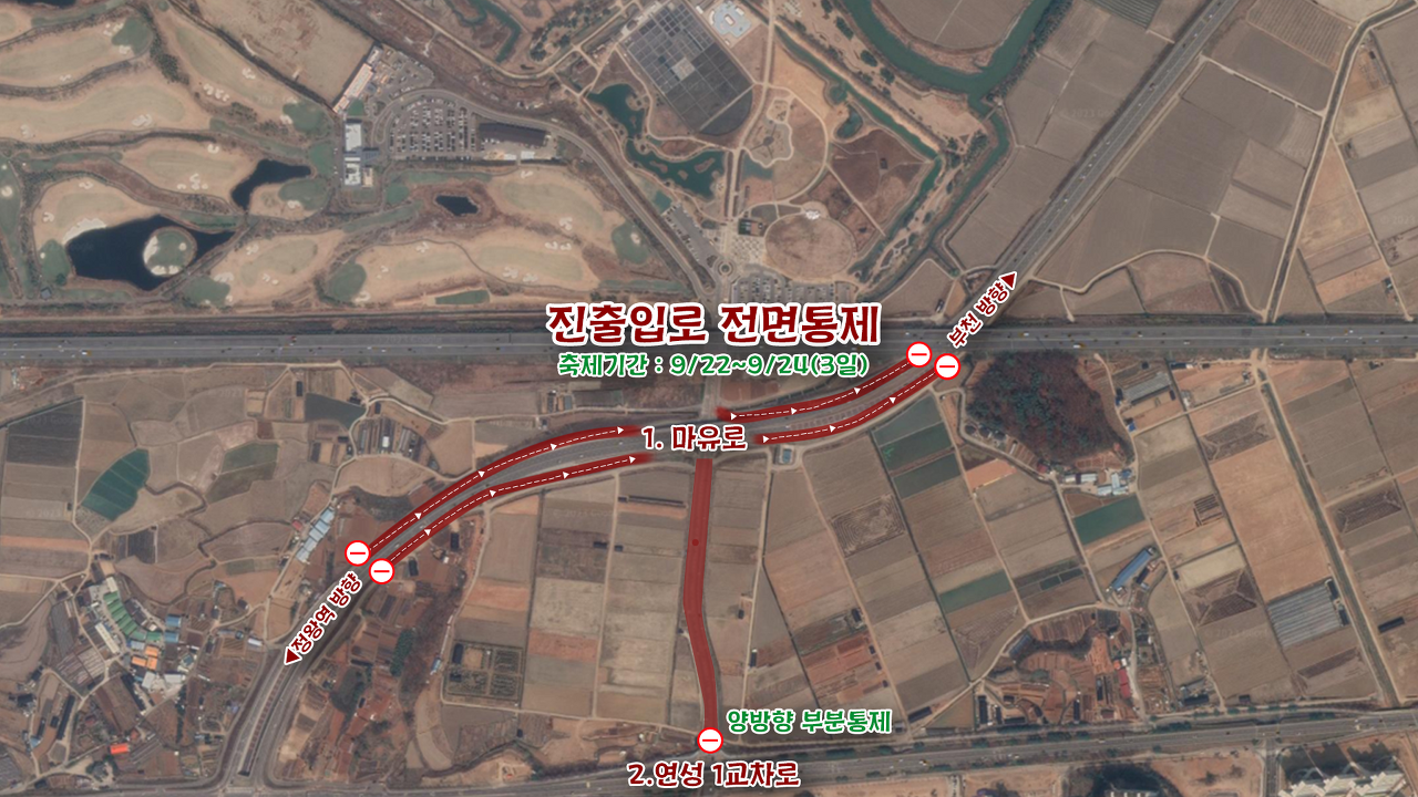 ➞ 교통통제구간 : 1. 각 마유로 램프 ~ 축제장 2. 연성1교차로 ~ 축제장