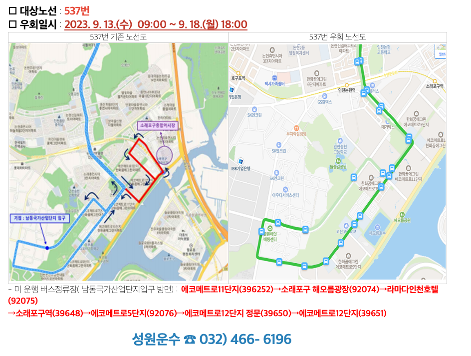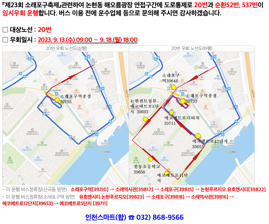 시내버스 노선 임시우회 운행 안내문