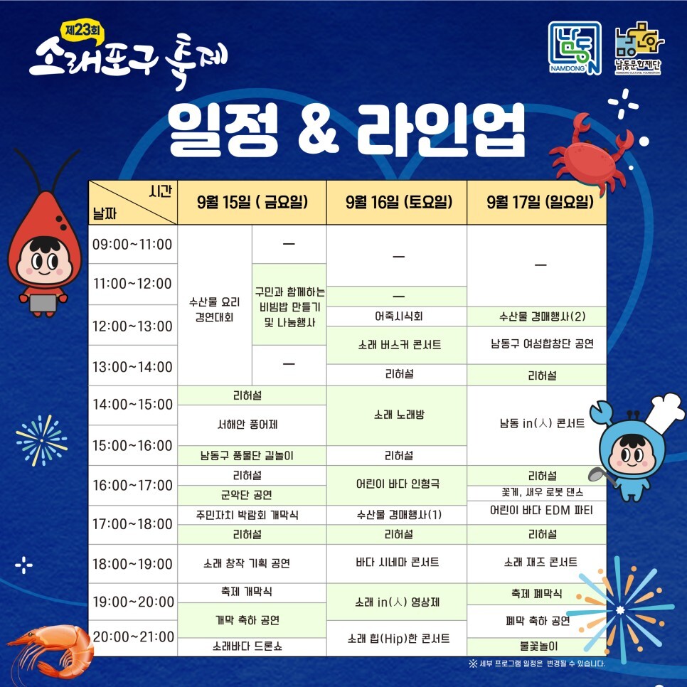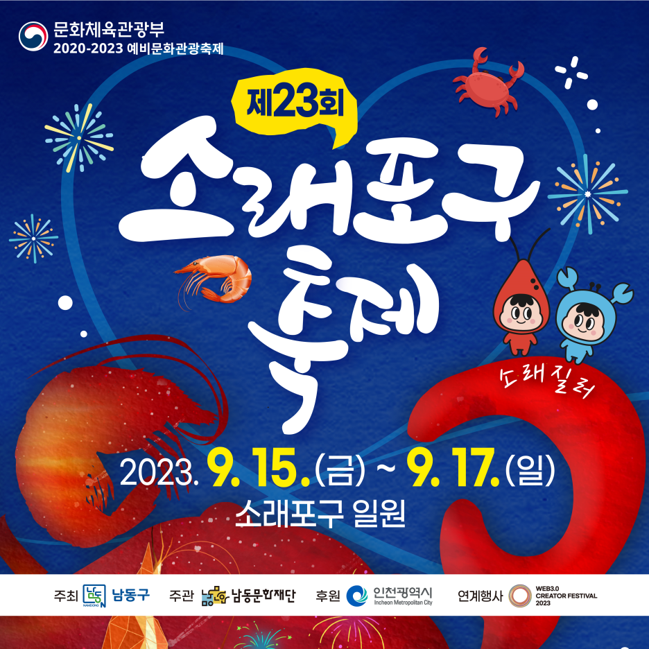 #가볼만한곳 #인천가볼만한곳 #소래포구가볼만한곳 #가볼만한축제 #가볼만한행사 #인천가볼만한축제 #소래포구가볼만한축제 #서울근교나들이 #소래포구축제 #소래포구해오름광장 #소래포구전통어시장 #소래습지생태공원 #버스킹 #개막축하공연 #여름축제 #여름나들이 #가을축제 #체험행사 #소래바다드론쇼 #어린이바다인형극 #바다시네마콘서트 #소래포구콘서트 #어린이바다EDM파티 #소래재즈콘서트 #폐막공연 #아티스트라인업 #에일리 #고아라 #양은별 #자이언티 #DJ히케이 #다비치 #이찬성 #소래아트존 #어죽시식회 #푸드트럭 #남동소래아트홀 #Web3CREATORFESTIVAL2023 #꽃게낚시체험 # 맨손대하잡기체험 #어린이보트낚시체험 #어린이머드체험놀이터 #소래역사관 #새우타워 #소래포구꽃게 #불꽃놀이