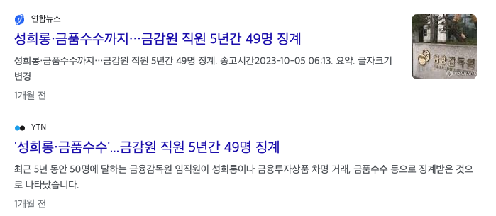 번외로 저축은행 부실 정보를 찾다보니 금감원의 도덕적 해이 문제도 심각합니다.