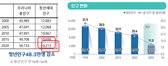 - 청년인구의 감소세.