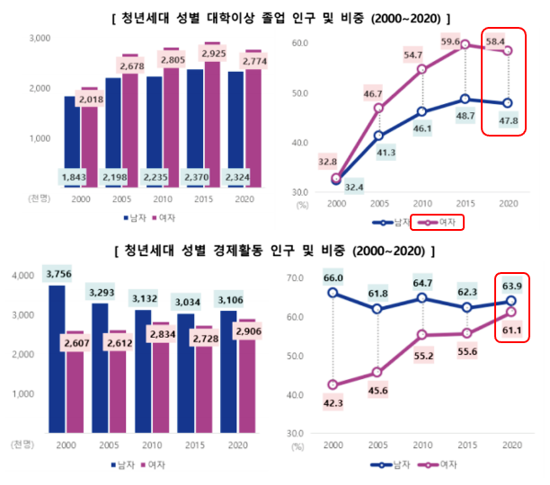 📊 청년인구 대졸, 경제활동 비중